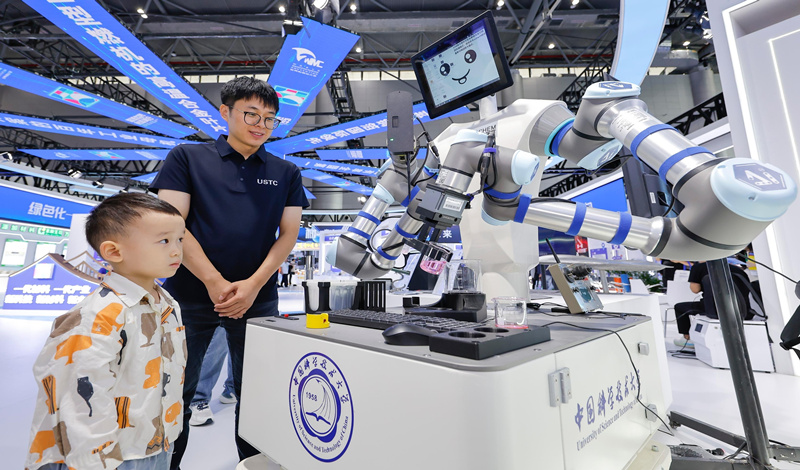 9月20日,在合肥濱湖國際會展中心,觀眾在參觀智能網聯新能源汽車展區展出的動力系統。 9月20日,在合肥濱湖國際會展中心,小朋友與中國科學技術大學展示的數據驅動的全流程機器化學家互動。 9月20日,在合肥駱崗公園全空間無人體...