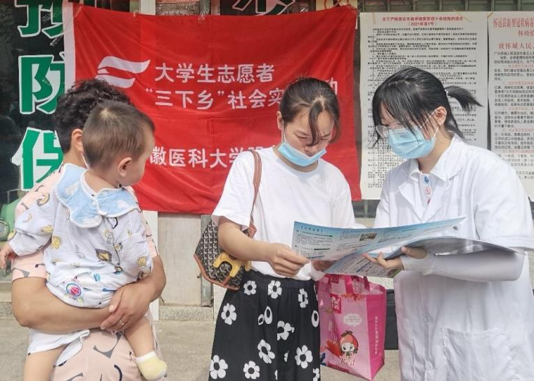 活動過程中,團(tuán)懷遠(yuǎn)縣委副書記趙明遠(yuǎn)、荊山鎮(zhèn)衛(wèi)生院副院長張景梅也來到現(xiàn)場,對隊員們下鄉(xiāng)鎮(zhèn)進(jìn)社區(qū)普及健康知識的“三下鄉(xiāng)”社會實踐活動表示肯定。趙書記表示:“炎炎夏日,安醫(yī)大的同學(xué)們來到懷遠(yuǎn),運(yùn)用所學(xué)醫(yī)學(xué)專業(yè)知識,深入社區(qū)、貼近百姓,為群眾辦實事解難題,在鄉(xiāng)村振興中踐行“請黨放心,強(qiáng)國有我”的錚錚誓言,為青春添了色彩,為團(tuán)旗增了顏色?!痹趫鲫爢T備受鼓舞,紛紛表示將“人民至上,生命至上”理念內(nèi)化于心,外化于形,爭做新時代的有為青年。