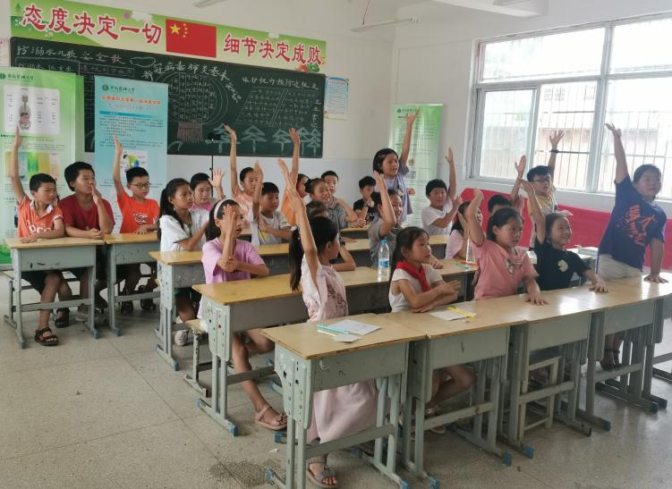 “牛奶水果不可少,不挑食,不偏食,我是健康小寶寶!”隊員趙子嫣正帶著小學(xué)生共唱健康童謠。正是在寓教于樂中隊員們帶著小學(xué)生認(rèn)識各類食物,教會他們餐前七步洗手法,并教育他們一米一粥當(dāng)思來之不易,珍惜眼前糧食。“孩子們來上課時臉上盡是天真爛漫的笑容,早早地在教室里坐好等我們。課堂上回答問題時都將黝黑的小手舉得高過頭頂”,隊員盧怡如說道。