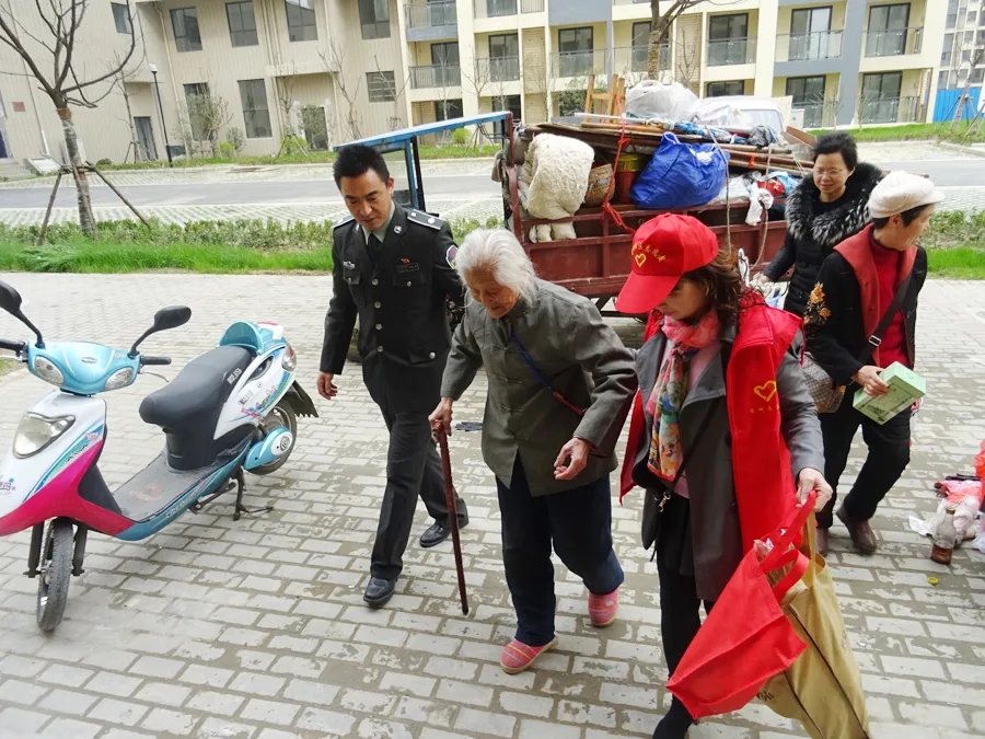在趙玉蓮的帶領(lǐng)下,“五彩紅”志愿服務(wù)隊(duì)為轄區(qū)孤寡老人搬家。圖片來源:宣城文明網(wǎng)