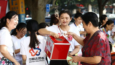9月9日,安徽省淮北市“99公益淮北婦女兒童關愛行動”線下公益活動在相王廣場舉行。過往市民踴躍捐款,為淮北困境婦女兒童送去溫暖和關愛。 淮北市舉辦“婦女兒童關愛行動”線下公益活動(張鋒 攝) “99公益日”是由中央網信辦網絡社會工...