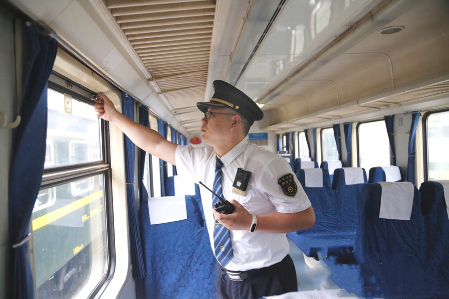 “看車是列車在庫內(nèi)停放期間,保證車上的設(shè)備安全,防止出現(xiàn)設(shè)備設(shè)施、備品用具丟失、損壞。”正在庫內(nèi)看車的K8481次列車長孫揚(yáng)威向記者介紹,進(jìn)入暑期,他們加大了對車廂的巡視力度,防止出現(xiàn)消防安全隱患?!?/span>