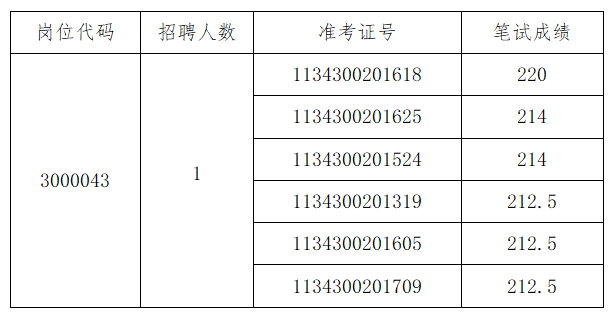 根據考生筆試成績及所報考崗位招聘計劃數,按5:1比例從高分到低分(須達到筆試最低控制合格分數線:兩科筆試成績總分達到150分且單科成績均不低于60分)確定資格復審人員名單(見附件),最后一名如有數名考生筆試成績相同的,一并確定為參加專業(yè)測試人選。