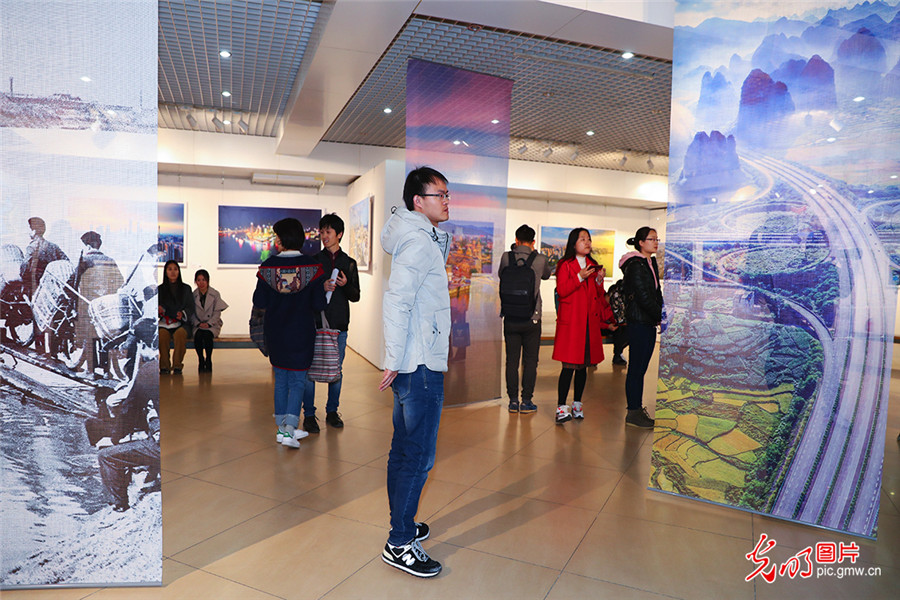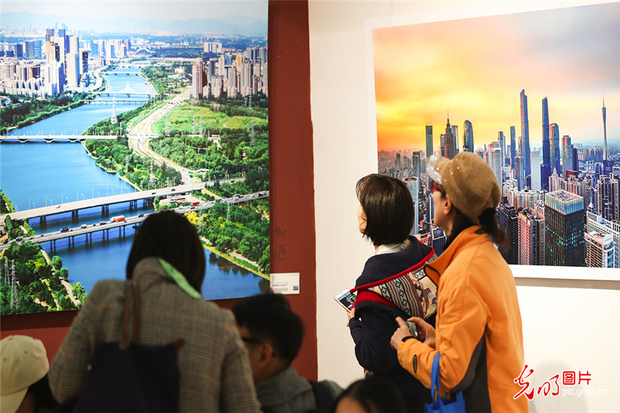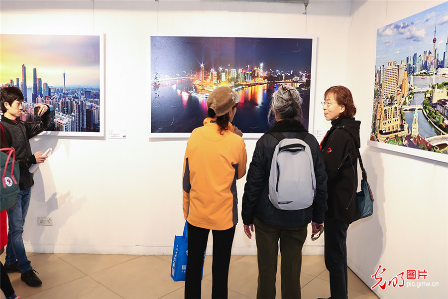 3月12日,喜迎新中國成立70周年——全國主流媒體“航拍中國”攝影圖片展在北京航空航天大學(xué)藝術(shù)館開幕。展覽由中國新聞攝影學(xué)會(huì)、北京航空航天大學(xué)、光明網(wǎng)聯(lián)合主辦,中國新聞攝影學(xué)會(huì)無人機(jī)攝影專業(yè)委員會(huì)、北京航空航天大學(xué)黨委宣傳部承辦。中國新聞攝影學(xué)會(huì)會(huì)長徐祖根,光明網(wǎng)總裁、總編輯楊谷,北京航空航天大學(xué)副校長張廣,中國新聞攝影學(xué)會(huì)無人機(jī)專業(yè)委員會(huì)主任王建華等先后在開幕式上致辭。中國新聞攝影學(xué)會(huì)副會(huì)長趙建偉、周朝榮、姚軍、丁偉,常務(wù)副秘書長陸中秋等,以及社會(huì)各界新聞工作者、攝影愛好者、北航師生代表參加開幕式。圖為觀眾在藝術(shù)館內(nèi)參觀展覽。(光明網(wǎng)記者 潘迪攝/光明圖片)