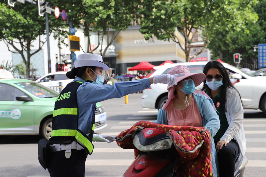 考場(chǎng)外,交警在忙著引導(dǎo)行人,保障交通秩序,為考生保駕護(hù)航。