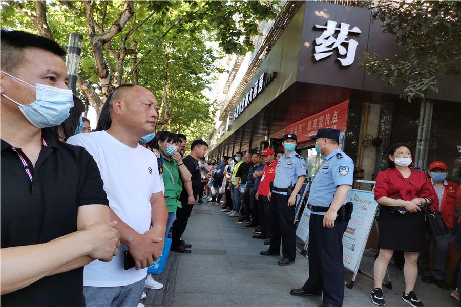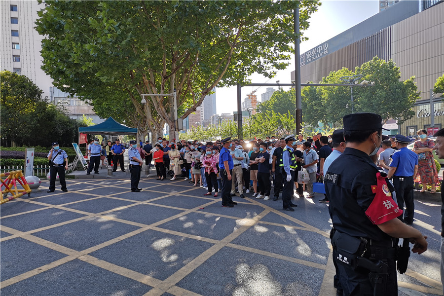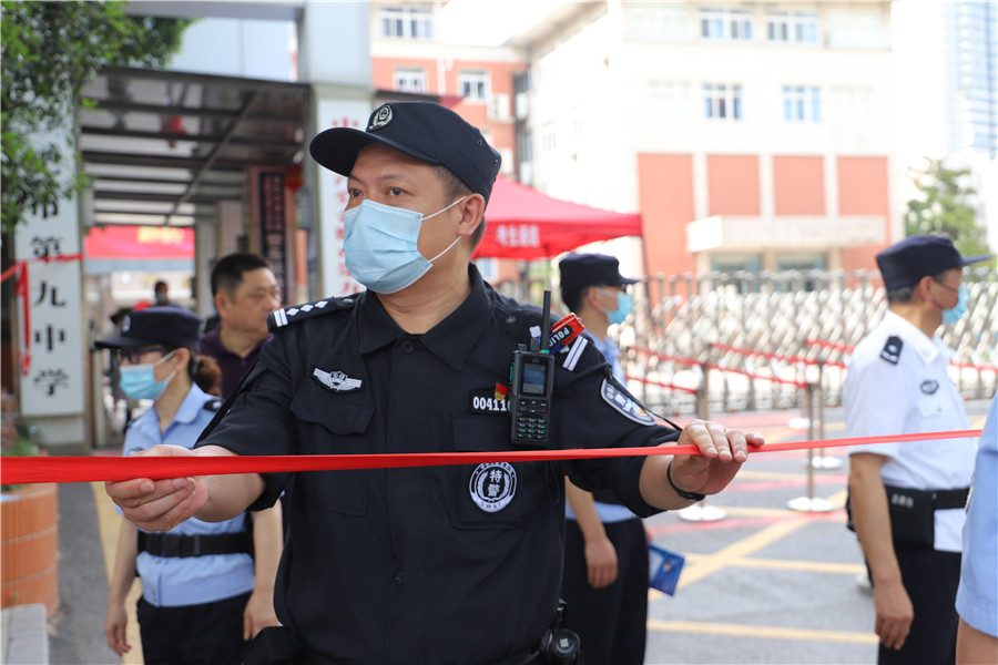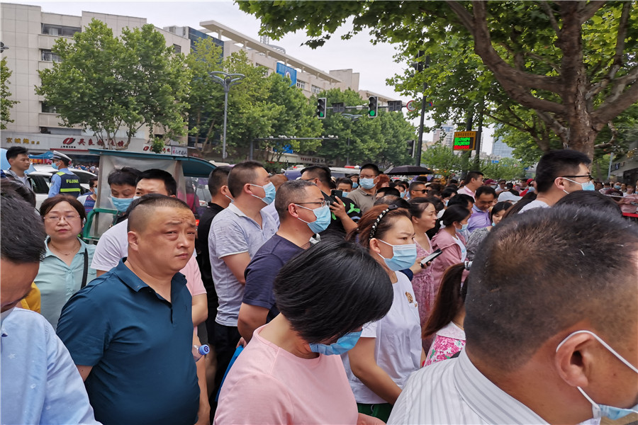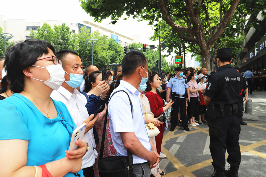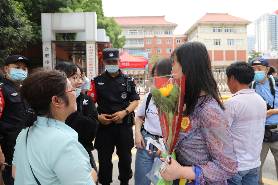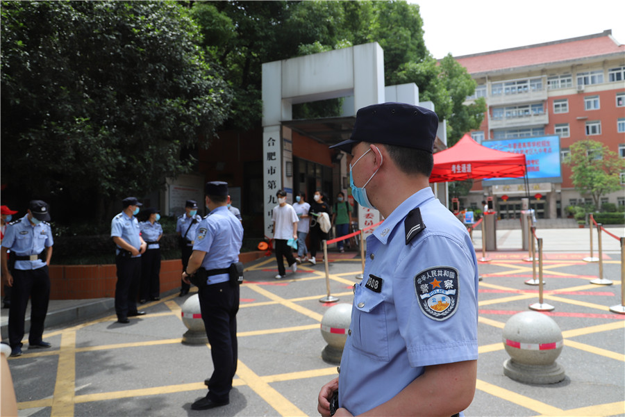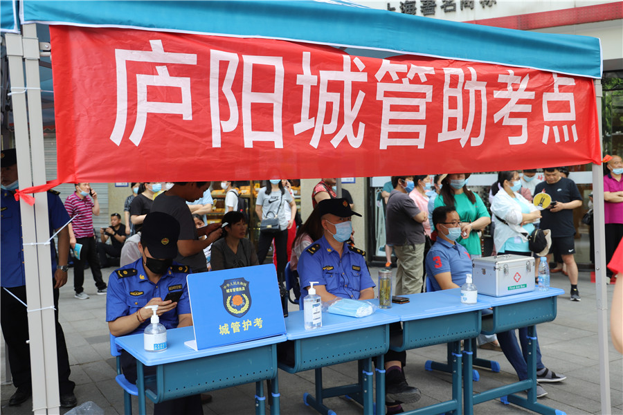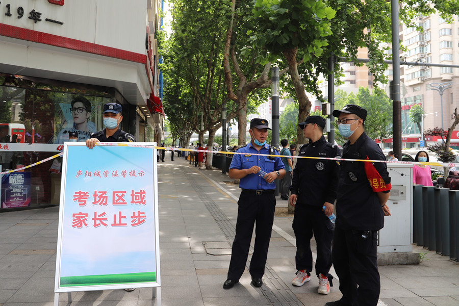 合肥四十二中考點(diǎn)門口,合肥城管正在維護(hù)秩序。