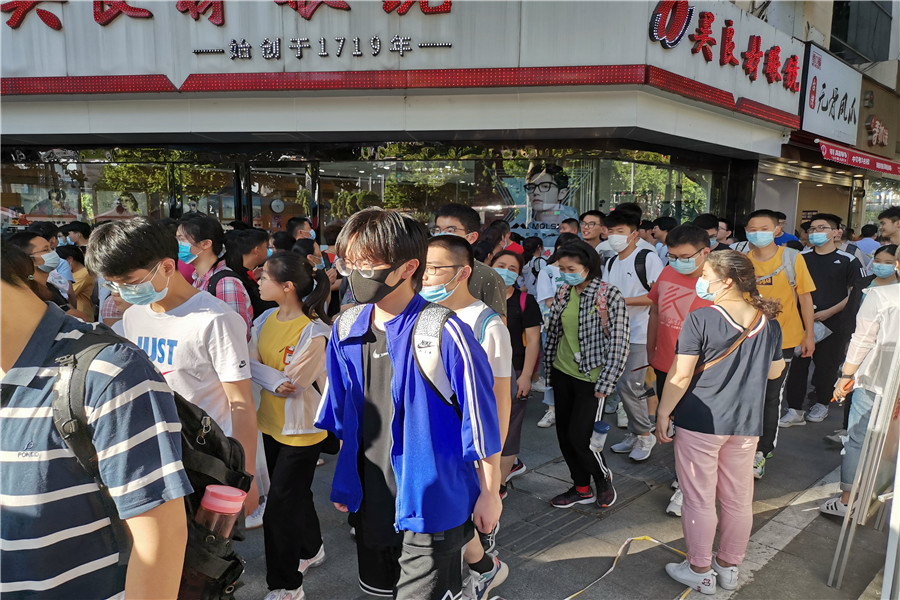 上午8:17,考生們陸續(xù)走入考場(chǎng)。