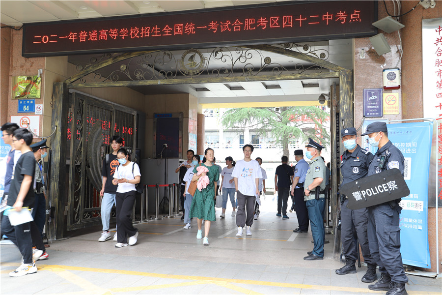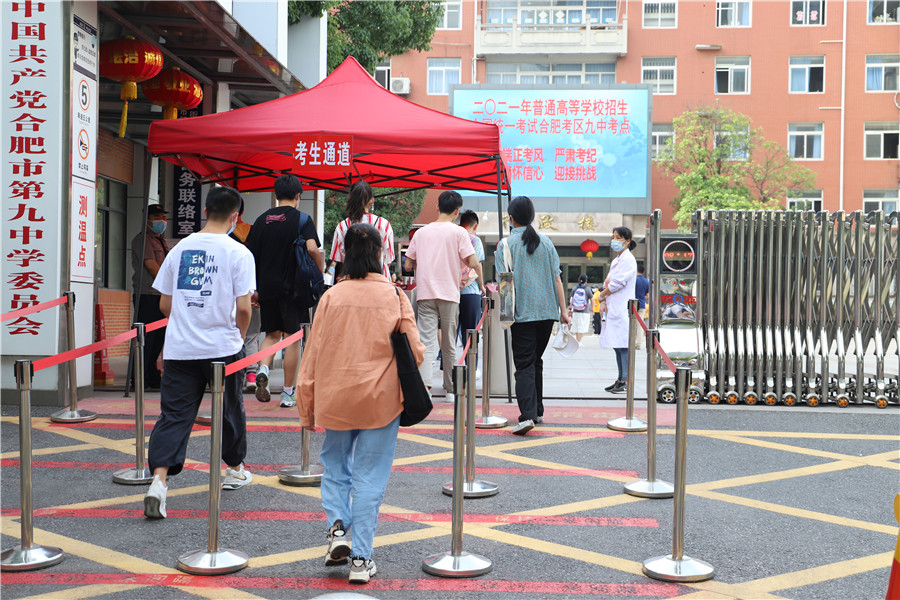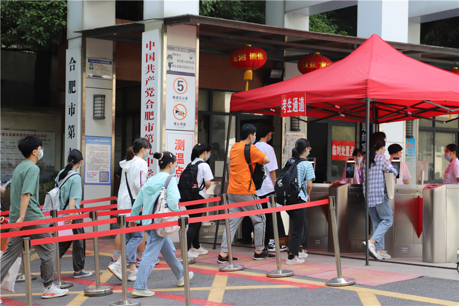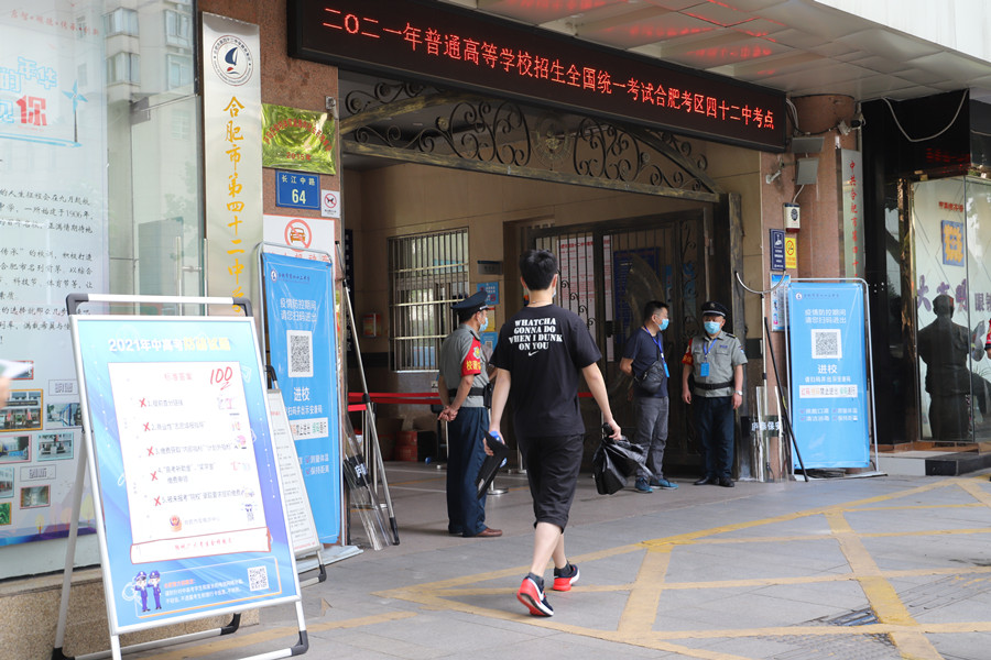 上午8:46,合肥四十二中考點(diǎn),考生正走入考場(chǎng)。