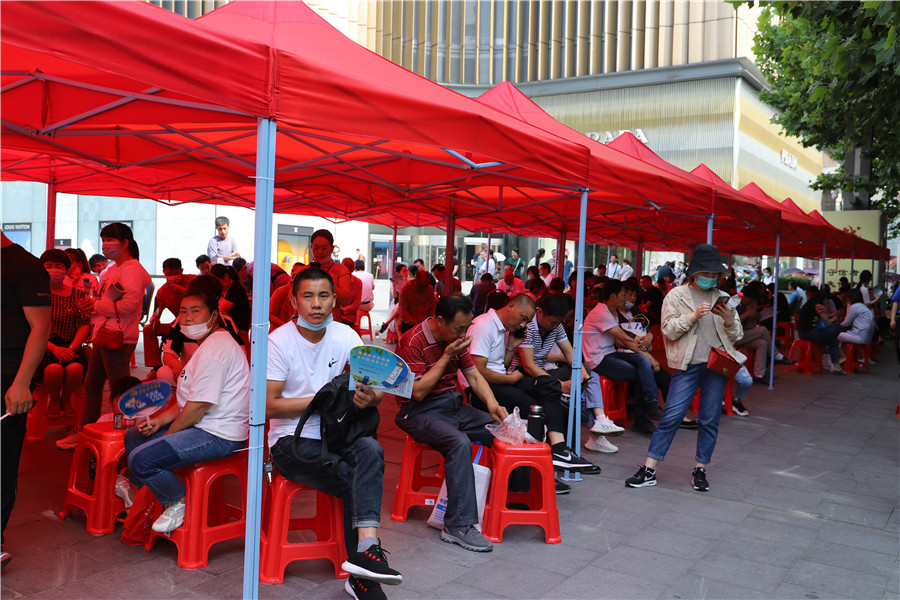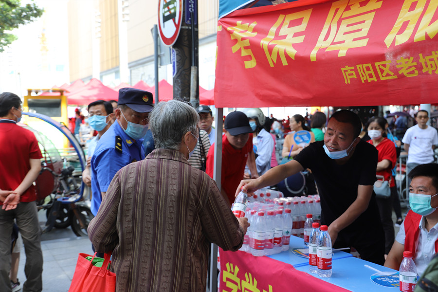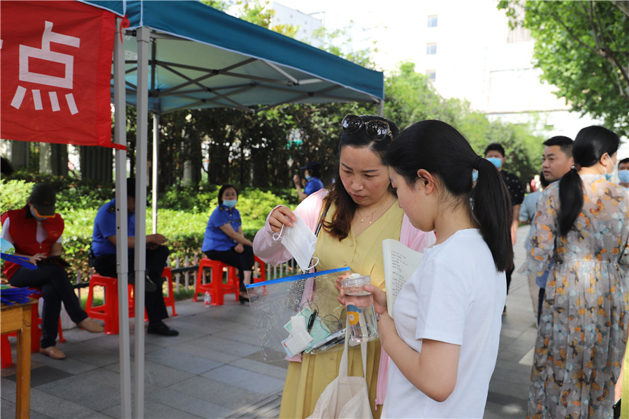 合肥四十二中考點(diǎn)門口和合肥九中考點(diǎn)門口都設(shè)置了助考點(diǎn),為考生和家長(zhǎng)提供礦泉水、口罩、扇子等物品。