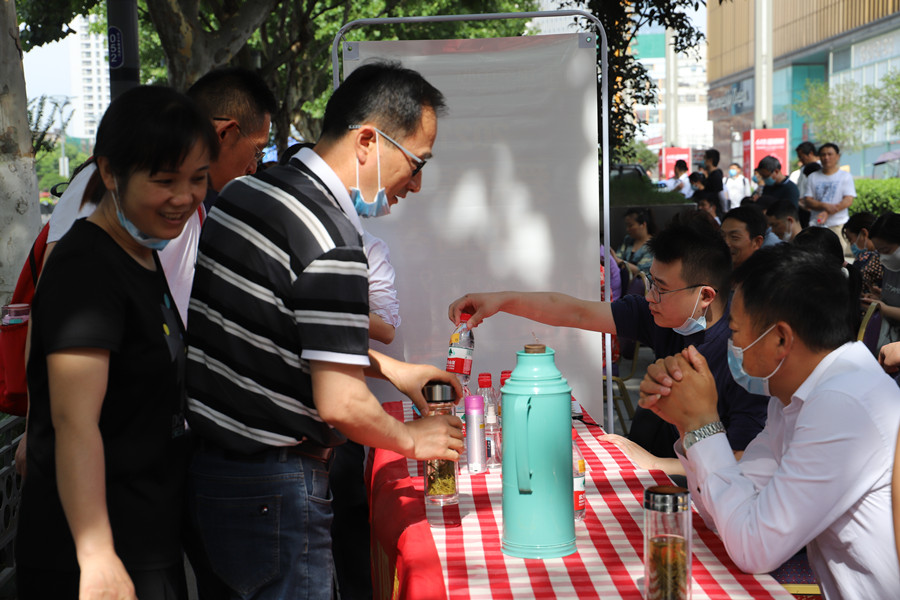 合肥四十二中考點(diǎn)門口和合肥九中考點(diǎn)門口都設(shè)置了助考點(diǎn),為考生和家長(zhǎng)提供礦泉水、開水、口罩、扇子等物品。