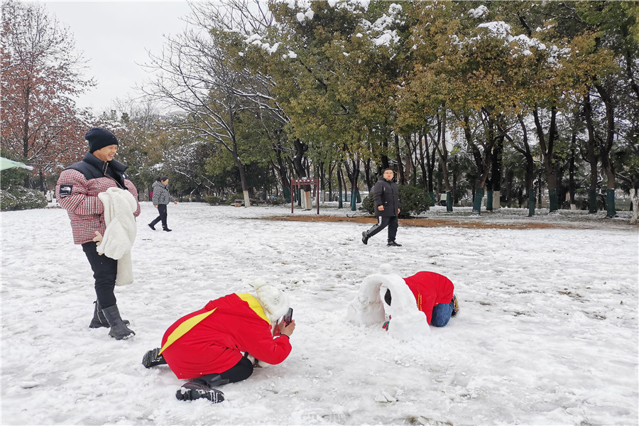 本網(wǎng)訊(記者 史洪芳)2月7日,虎年正月初七,合肥大雪紛飛。逍遙津公園、包公園一派銀裝素裹,廣大市民紛紛走出家門,和親朋好友在公園觀賞如畫(huà)雪景,堆雪人、打雪仗、滾雪球……熱鬧非凡,很多人用手機(jī)拍照片或短視頻留下對(duì)雪的美好記憶。