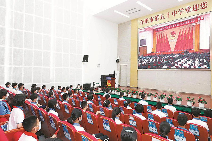 5月10日上午,合肥市蜀山區(qū)筆架山街道團(tuán)工委聯(lián)合合肥市五十中新校團(tuán)委,組織該校共青團(tuán)員觀看慶祝中國(guó)共產(chǎn)主義青年團(tuán)成立100周年大會(huì)直播,并通過(guò)重溫入團(tuán)誓詞、唱團(tuán)歌等形式激發(fā)廣大共青團(tuán)員刻苦學(xué)習(xí)、艱苦奮斗的責(zé)任感和使命感。