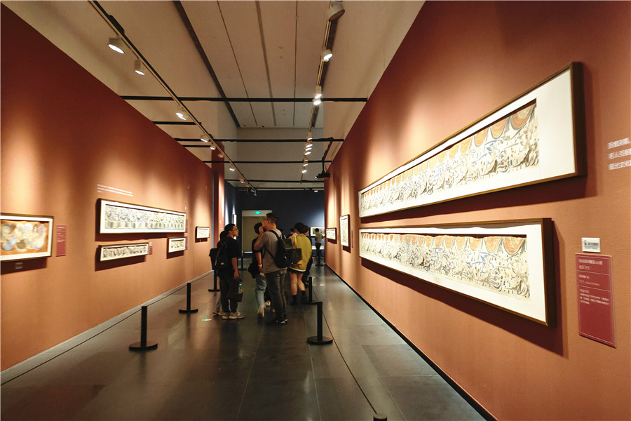 其中,“安徽省重大歷史題材美術作品展”作品主題從近代到當代,涵蓋了國畫、油畫、版畫、雕塑等多種表現方式,以美術的形式記錄和反映安徽波瀾壯闊的歷史,表現了不同歷史時期重大事件、重要場景和杰出人物,描繪出一幅幅壯美畫卷。“敦煌壁影——壁畫與數字藝術展”展出當代名家所臨摹的敦煌壁畫作品,共分為游絲墜天、絢彩積巖、紋采飛揚、謀局如意、萬象匯現五大板塊,觀眾還能在數字藝術展廳沉浸式體驗敦煌的千年光影世界。