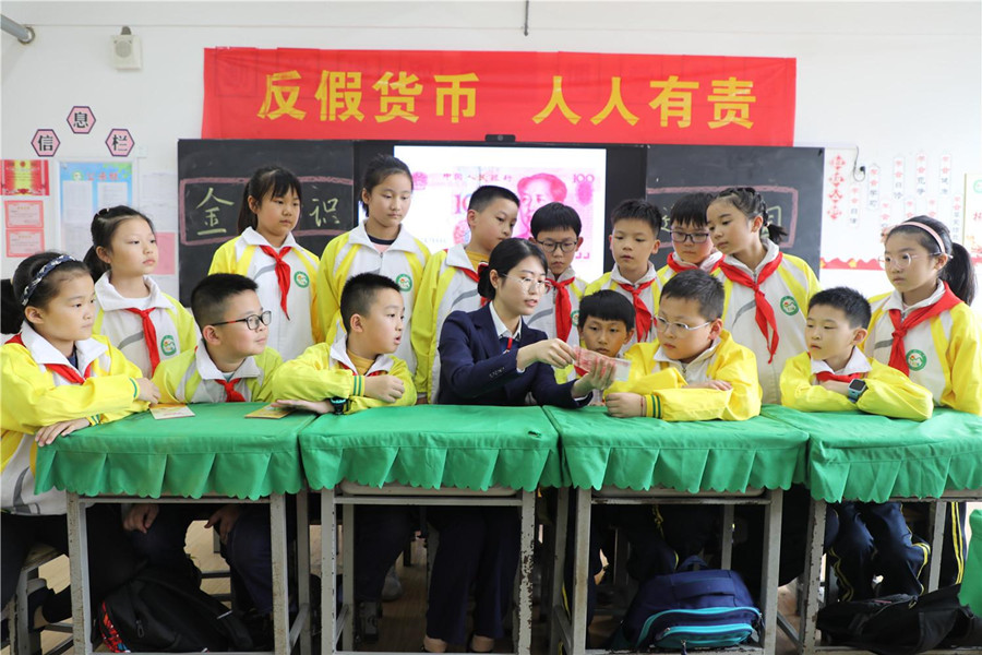 近日,樅陽縣農商銀行工作人員到旗山小學開展“金融知識進校園”活動,給學生講解防電信網絡詐騙、人民幣真偽識別、存取款等金融知識。