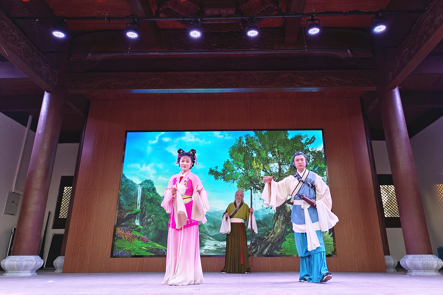 本網(wǎng)訊(記者 史洪芳)《女駙馬》《牛郎織女》《戲牡丹》《打豆腐》……2024年1月1日,正值元旦假期,合肥市逍遙津公園蘧莊舉辦了“梨園飄香”戲曲演出活動,上演連臺好戲,一段段黃梅戲經(jīng)典曲目令現(xiàn)場觀眾過足了戲癮。臺下座無虛席,精彩演出不時贏得陣陣掌聲。