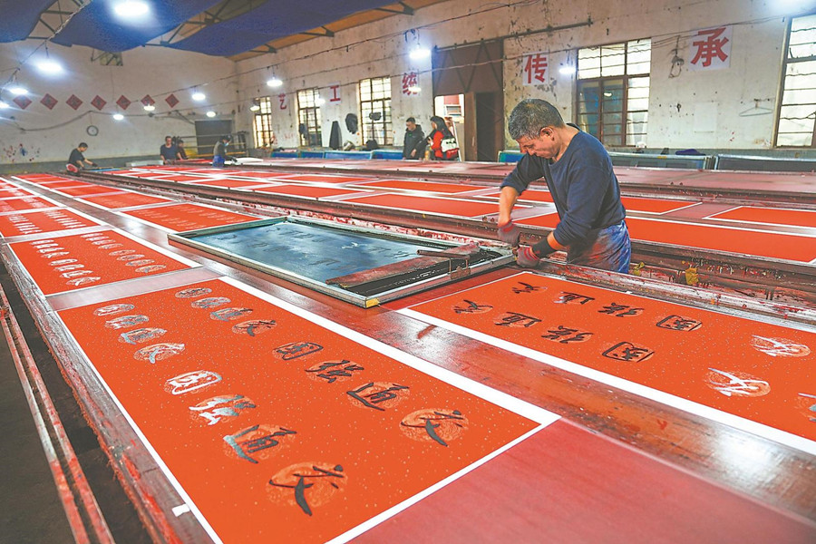 近日,涇縣丁家橋鎮宣紙書畫紙生產加工企業趕制春聯。臨近春節,當地宣紙書畫紙生產加工企業迎來春聯產銷旺季。記者 李博 王蘭蘭 實習生 錢威 攝