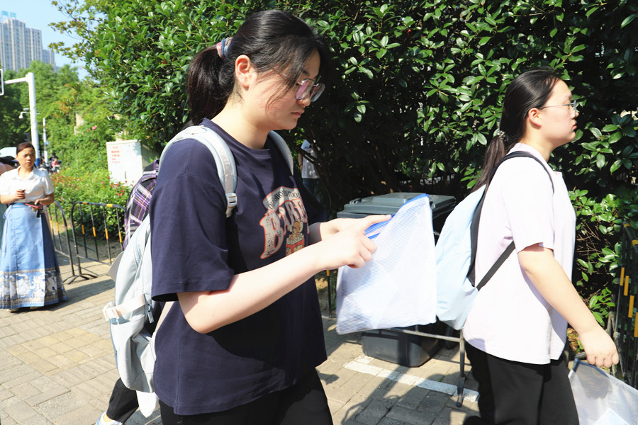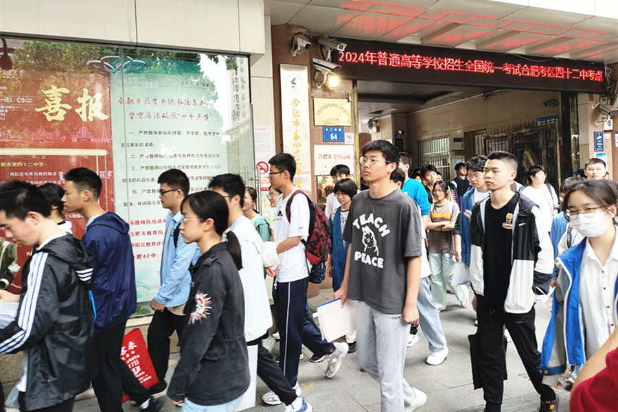 合肥八中考點,考生們走出考場。