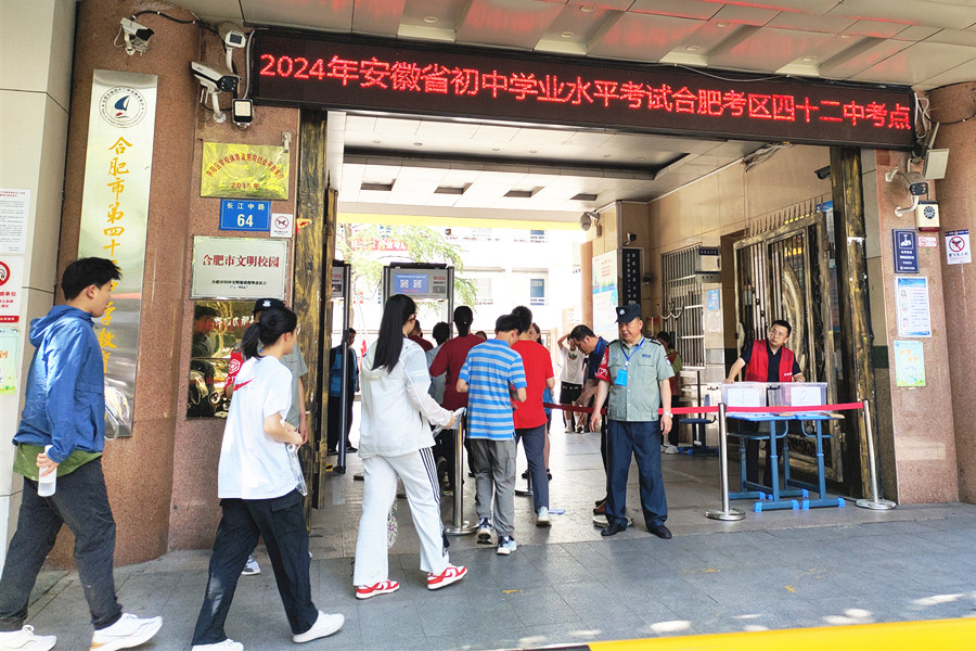 本網(wǎng)訊(記者 史洪芳)6月14日,安徽省2024年初中學(xué)業(yè)水平考試正式拉開(kāi)帷幕,全省73.72萬(wàn)考生奔赴考場(chǎng)。合肥市多部門聯(lián)動(dòng),在考點(diǎn)周邊設(shè)置休息區(qū)、志愿服務(wù)臺(tái),為考生及家長(zhǎng)提供貼心服務(wù)和免費(fèi)物資。
