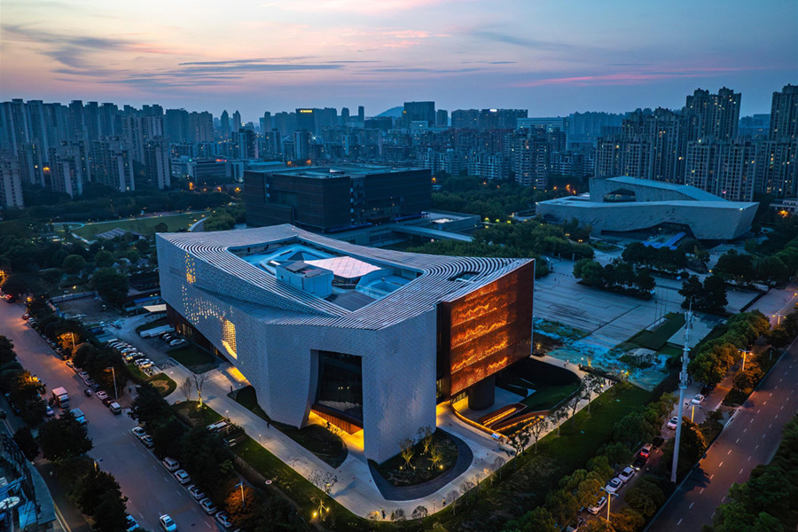 8月26日晚,位于合肥市政務文化新區(qū)的合肥美術(shù)館在進行亮燈調(diào)試。目前,該館主體工程已建設完成,開放后將進一步提升合肥的城市功能和品位,更好地滿足人民群眾對文化生活的新期待。