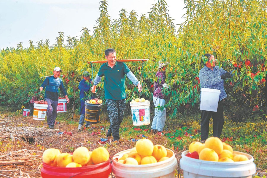 連日來,村民在來安縣楊郢鄉沈子芳家庭農場采摘冬桃。該農場依托江淮分水嶺獨特的地形和氣候特點,種植山杏、冬桃等特色水果,通過“產業+旅游”融合發展,幫助農民增收。