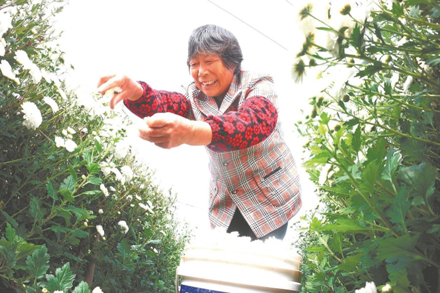 10月21日,歙縣富堨鎮青山村農民首日采摘第二季白菊花,該村種植的白菊花品種每年7月、10月分別采摘一次,兩季采摘質量和數量均有提高,畝均收入都超萬元。