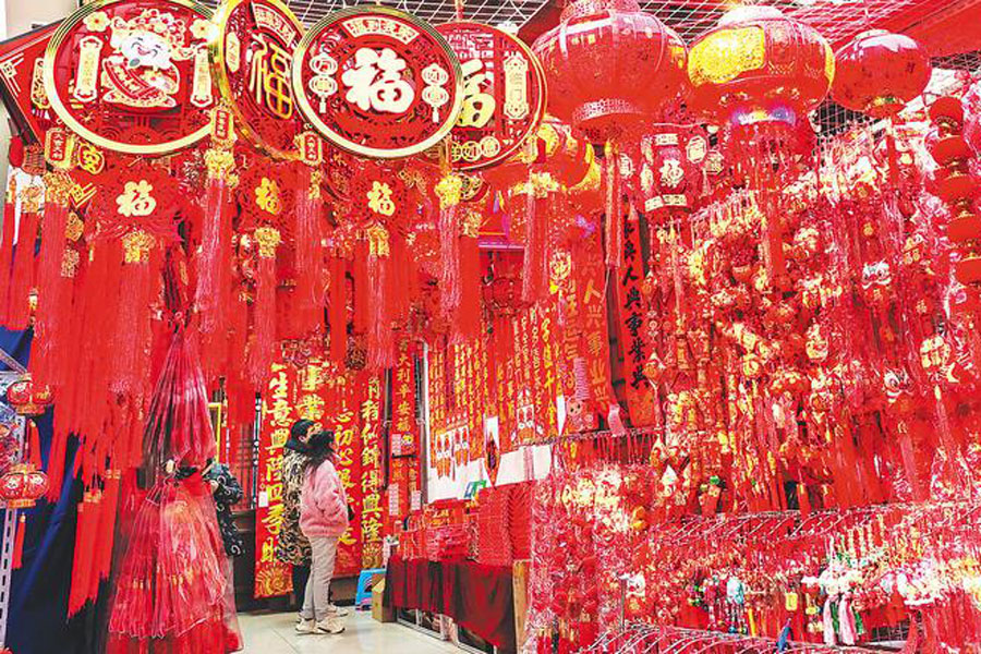2025年的腳步越來越近,商家們將中國結、燈籠、蛇年玩偶等新年飾品放在顯眼位置,引得市民紛紛駐足。