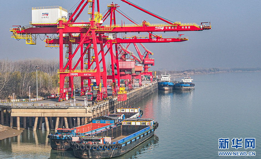 近年來,鄭蒲港新區充分發揮其在長江經濟帶的區位優勢,整合長江航運、公鐵水多式聯運等中轉和運輸功能,著力打造安徽江海聯運樞紐中心,“區港聯動”“鐵水聯運”成效初顯。新華網發(王文生 攝)