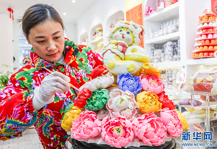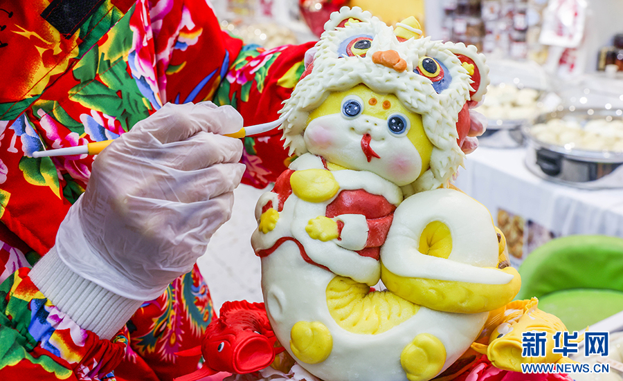 隨著農歷蛇年臨近,安徽省淮北市濉溪縣花饃非遺傳承人郭鈺加緊趕制“生肖蛇”“鯉魚”“花束”等富有美好寓意的花饃,供應節日市場,為即將到來的蛇年增添了濃濃的喜慶氣氛。新華網發(王文 攝)