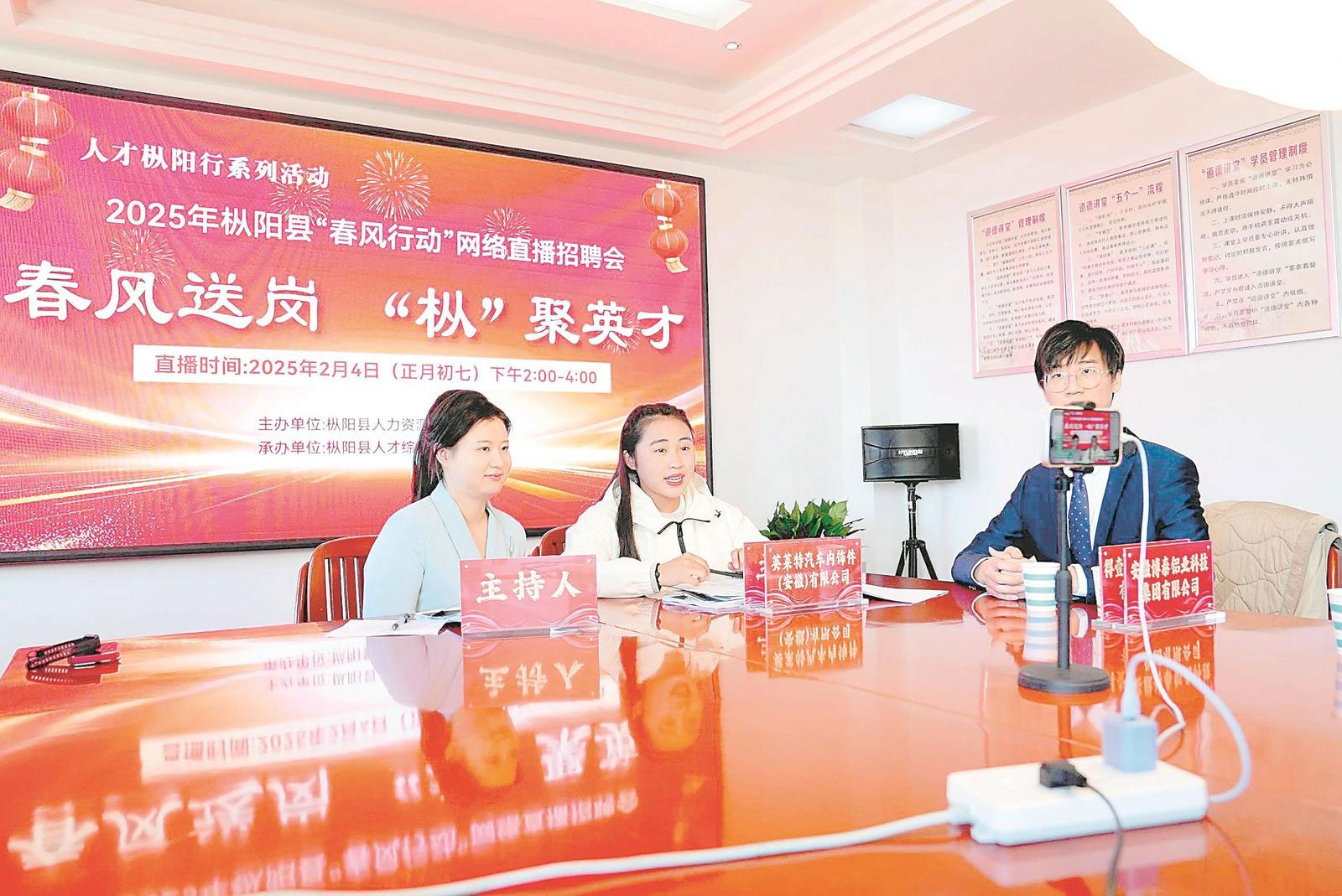 2月4日,樅陽縣網(wǎng)絡(luò)主播通過直播方式發(fā)布崗位招聘信息。當(dāng)日,樅陽縣舉辦2025年“春風(fēng)行動”網(wǎng)絡(luò)直播招聘會,這次活動共邀請了57家企業(yè)參與,提供崗位超過2700個。通訊員 王章志 攝