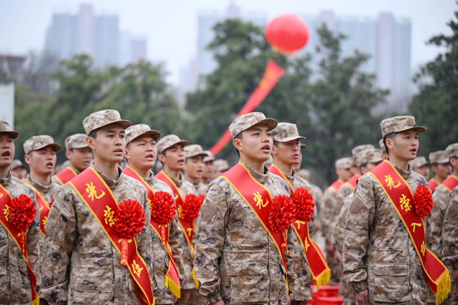 當日,安徽省合肥市廬陽區隆重舉行2025年上半年新兵入伍儀式歡送大會暨立功受獎軍人集中送喜報儀式,即將奔赴軍營的新兵身著迷彩戎裝,離開家鄉告別親人,開啟新的人生征途。(徐偉 孫勁 來路 記者 史睿雯)
