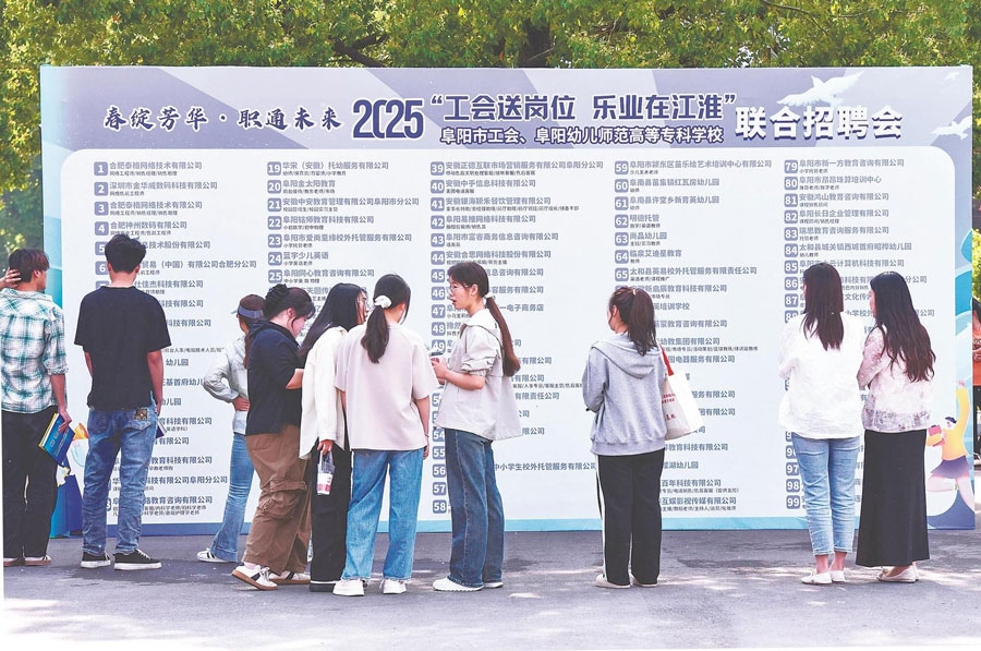 近日,阜陽市工會、阜陽幼兒師范高等??茖W校聯合舉行招聘會,近百家用人單位提供3000余個崗位,吸引眾多應屆畢業生前來應聘。通訊員 盧啟建 攝