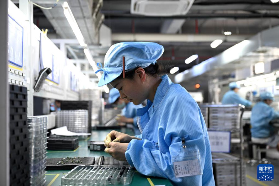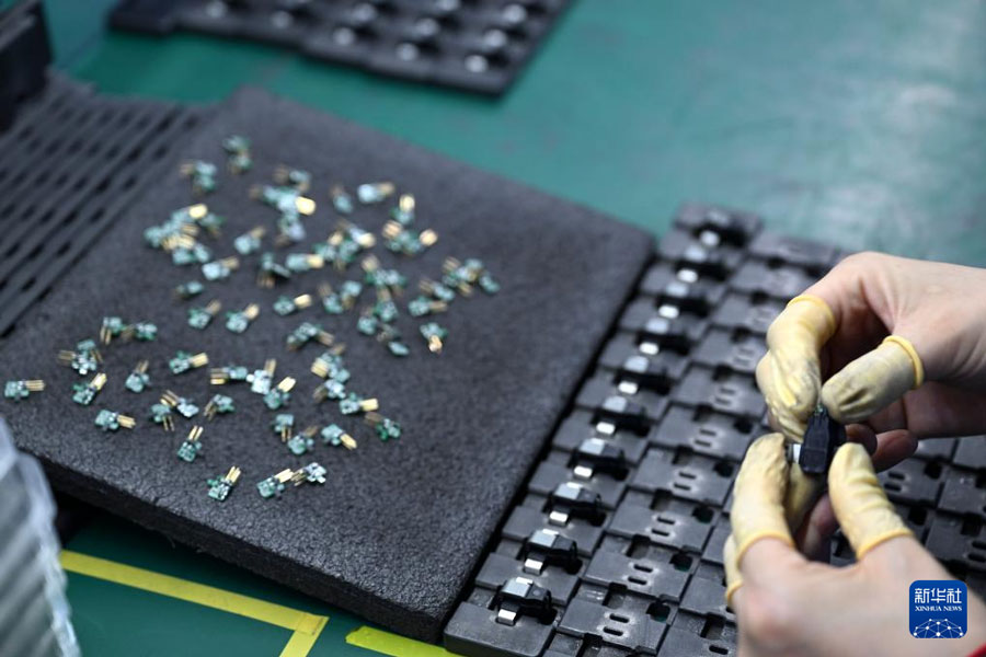 5月21日,安徽希磁科技股份有限公司的工作人員在組裝一款傳感器。