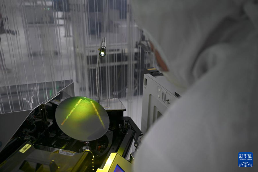 5月21日,安徽華鑫微納集成電路有限公司的工作人員在檢測(cè)MEMS晶圓。