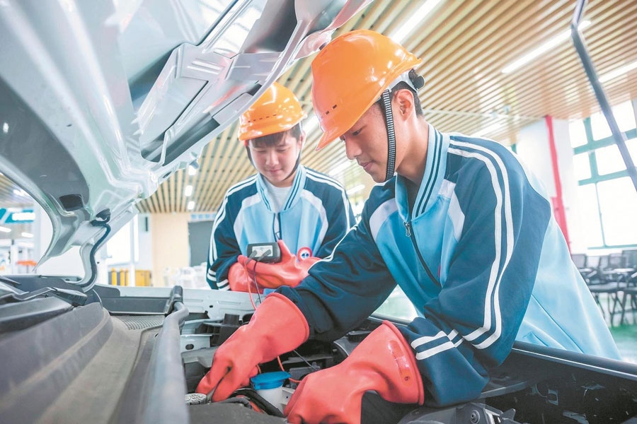 近日,在蕪湖市繁昌區蕪湖機械工程學校校園技能文化節上,學生在參加新能源汽車檢測與維修賽項技能比賽。通訊員 肖本祥 攝