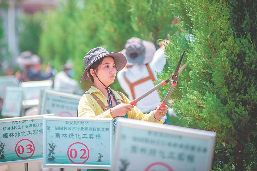 5月25日,來安縣首屆園林園藝行業職業技能競賽在該縣舜山鎮開賽。全縣89名園林工人與36名盆景師齊聚賽場,以精湛技藝展開激烈角逐。通訊員 呂華 攝