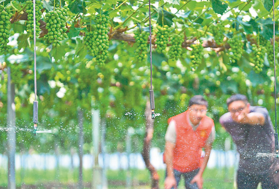 從“要我低碳”到“我要低碳”。皖北平原上的任集村,1200多盞太陽能路燈、800余戶村民參與屋面光伏項目、2500多畝采煤沉陷區(qū)水面的“漁光互補”,綠色低碳、簡約適度的生活理念深入當?shù)卮迕竦男闹小D箱呛影哆叺男旅翊澹r(nóng)戶利用物聯(lián)網(wǎng)、水肥一體化、精準滴灌等技術(shù)讓葡萄種植實現(xiàn)節(jié)水、節(jié)能和減肥30%左右,濕地豐富的水系資源及地勢優(yōu)勢,也讓村莊通過無動力水利設(shè)施形成水源凈化、灌溉和排澇功能一體化的自循環(huán)體系。城市近郊的優(yōu)美風景、觀光采摘,更讓當?shù)卮迕癯陨狭恕拔穆蔑垺薄?/span>