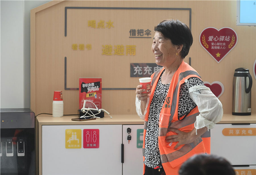 近日,在亳州供電工會(huì)驛站內(nèi),戶外勞動(dòng)者黃春玲正在休息。高溫天氣里,遍及亳州市主要街區(qū)的988個(gè)戶外勞動(dòng)者服務(wù)站點(diǎn),為戶外勞動(dòng)者提供“清涼”。本報(bào)通訊員 張洪金 攝