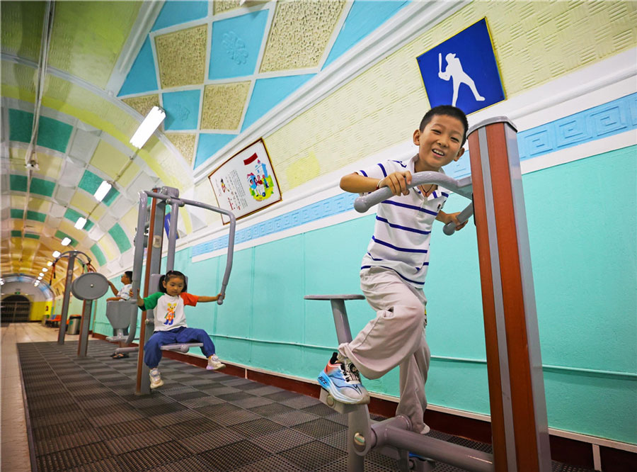 7月2日,蕪湖市鏡湖區(qū)赭山公園隱園防空洞免費(fèi)休閑納涼點(diǎn),小朋友們?cè)阱憻捝眢w。該納涼點(diǎn)自7月1日至9月15日向市民免費(fèi)開放。本報(bào)通訊員 王玉實(shí) 徐萍 攝