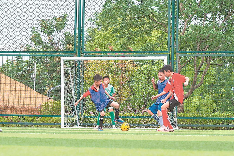 6月27日,蕪湖市繁昌區(qū)峨山鎮(zhèn),小學生在足球場上角逐。暑假期間,繁昌區(qū)教育部門依托足球協會等舉辦少兒足球夏令營,豐富學生暑假生活。本報通訊員 肖本祥 攝