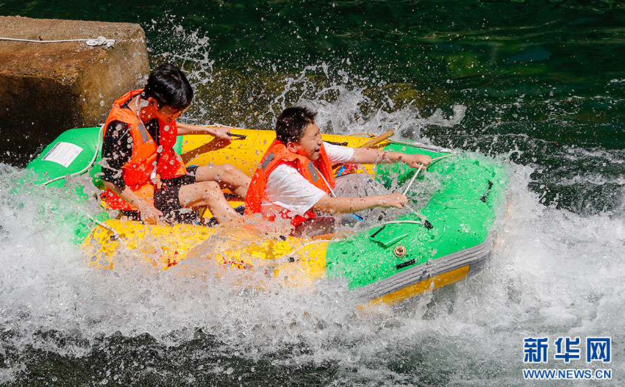 當日是小暑節氣,眾多游客來到安徽省黃山市休寧縣夾溪河體驗漂流,親水玩耍,暢享清涼。新華網發(施亞磊 攝)