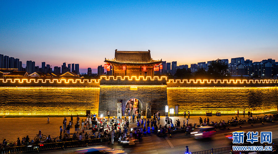 近日,市民在安徽省淮北市濉溪縣石板街賞夜景。