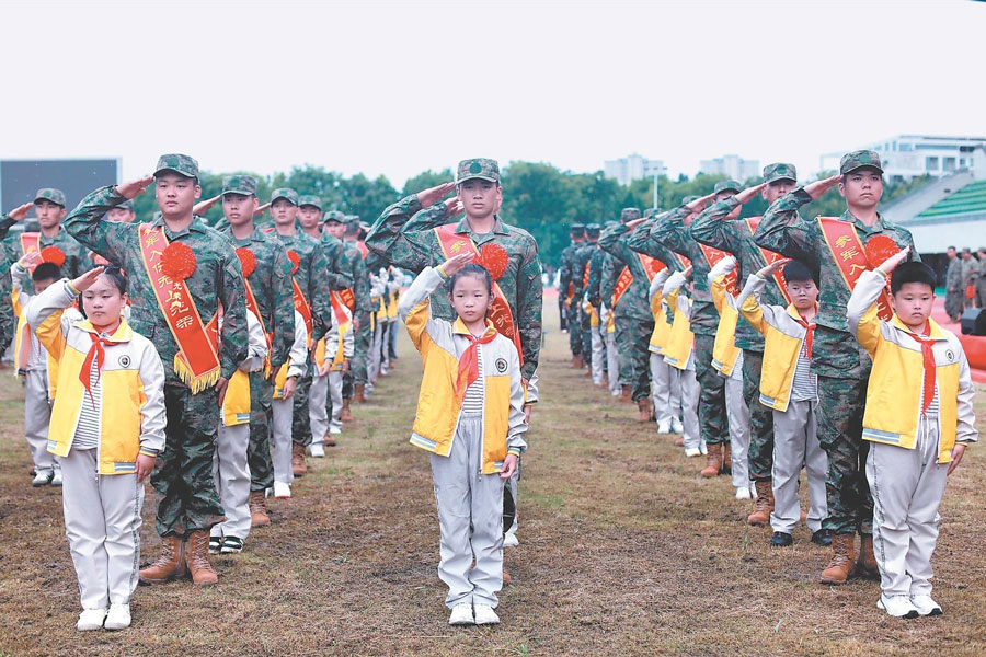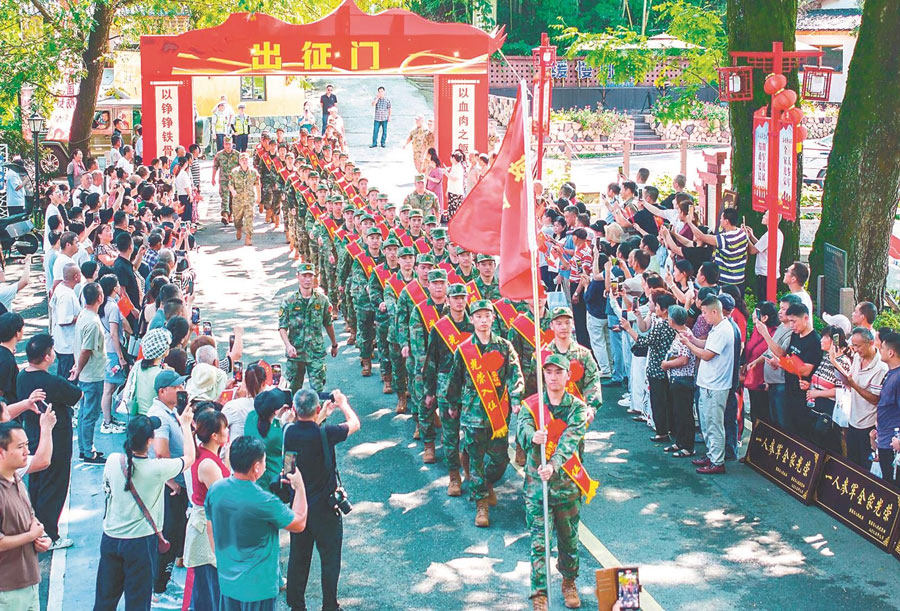 9月15日,在蕪湖市繁昌區(qū)孫村鎮(zhèn)中分村新四軍第三支隊(duì)司令部舊址,當(dāng)?shù)厝罕姎g送入伍新兵。數(shù)十名新戰(zhàn)士帶著家鄉(xiāng)人民的囑托和期盼,奔赴軍營(yíng),投身國(guó)防建設(shè)。通訊員 肖本祥 攝