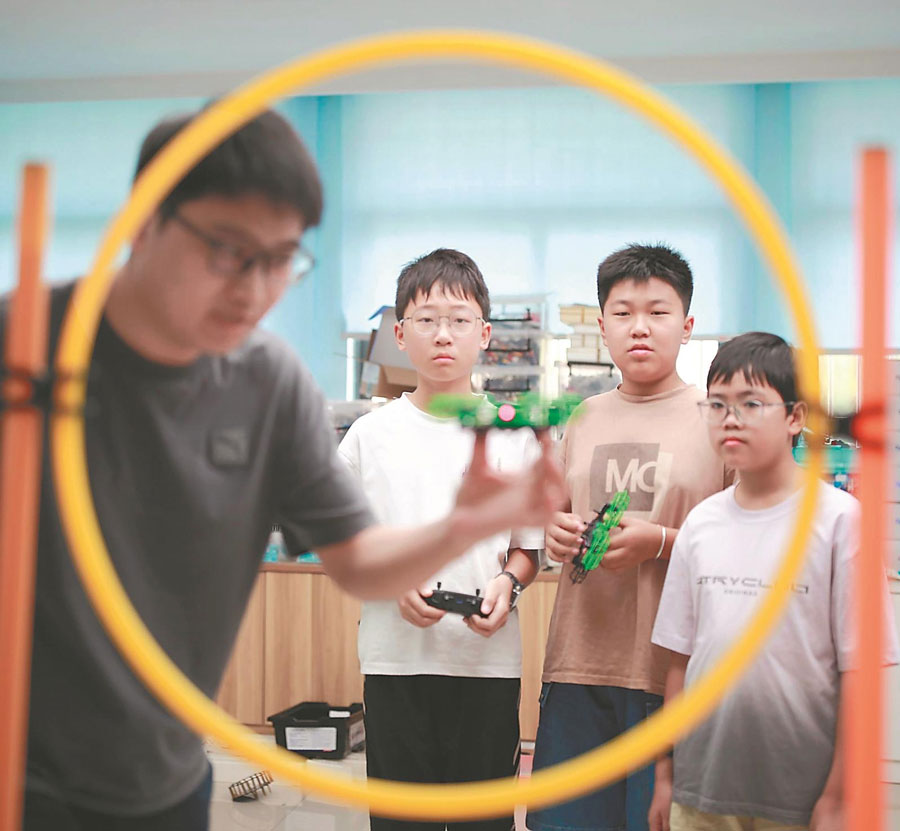 9月14日,蕪湖市繁昌區青少年活動中心科技課堂,老師給小朋友們講解無人機操控知識并進行飛行訓練。本報通訊員 程健 攝
