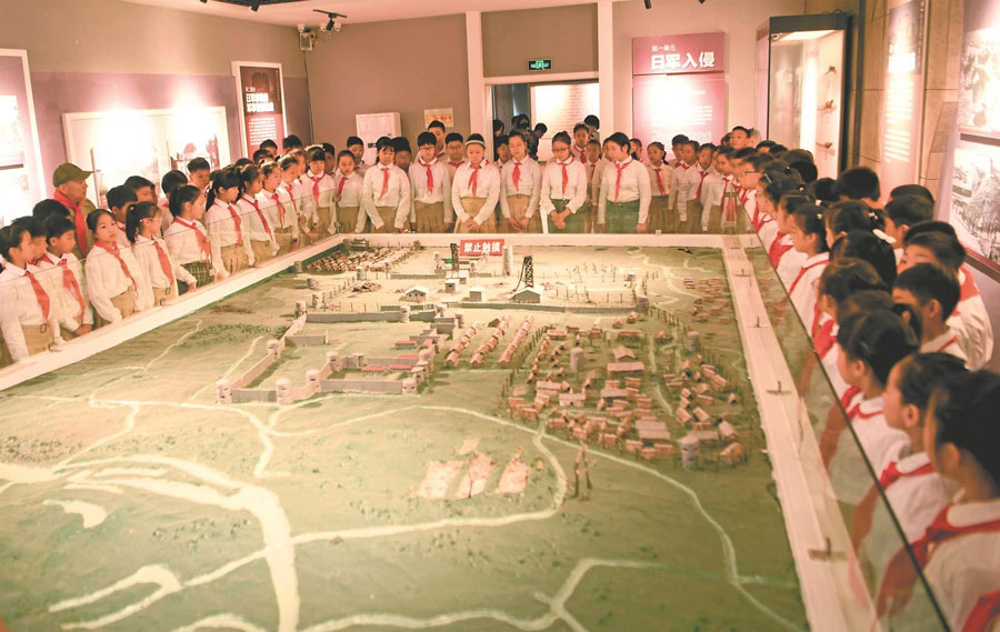 9月18日,淮南師范附屬小學(xué)學(xué)生走進大通萬人坑教育館參觀日軍侵占淮南煤礦罪證陳列展。特約攝影 陳彬 攝
