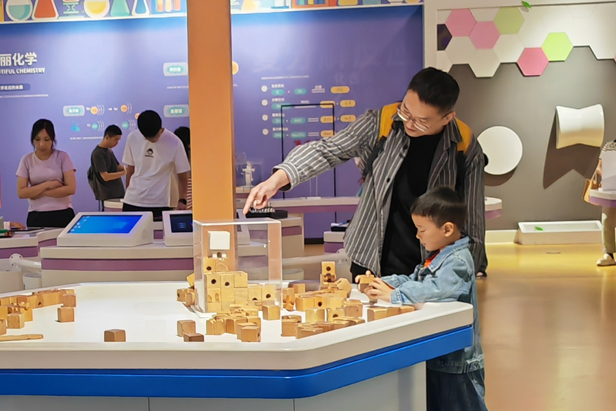 10月12日,位于巢湖岸邊的安徽省科技館內(nèi)參觀者眾多。省科技館展覽教育區(qū)設(shè)置科技強(qiáng)國、科學(xué)征程、減碳之路、童趣樂園、健康之本、天地探秘、量子探微、數(shù)字探夢、科創(chuàng)探趣等9個(gè)常設(shè)主題展廳、1個(gè)科學(xué)秀場、1個(gè)臨時(shí)展廳以及巨幕影院、球幕影院、4D影院等3個(gè)特效影院,擁有豐富的科教資源。孩子們在這里不僅可以近距離感受科技魅力,還能點(diǎn)燃科學(xué)夢想。(賀鵬云)