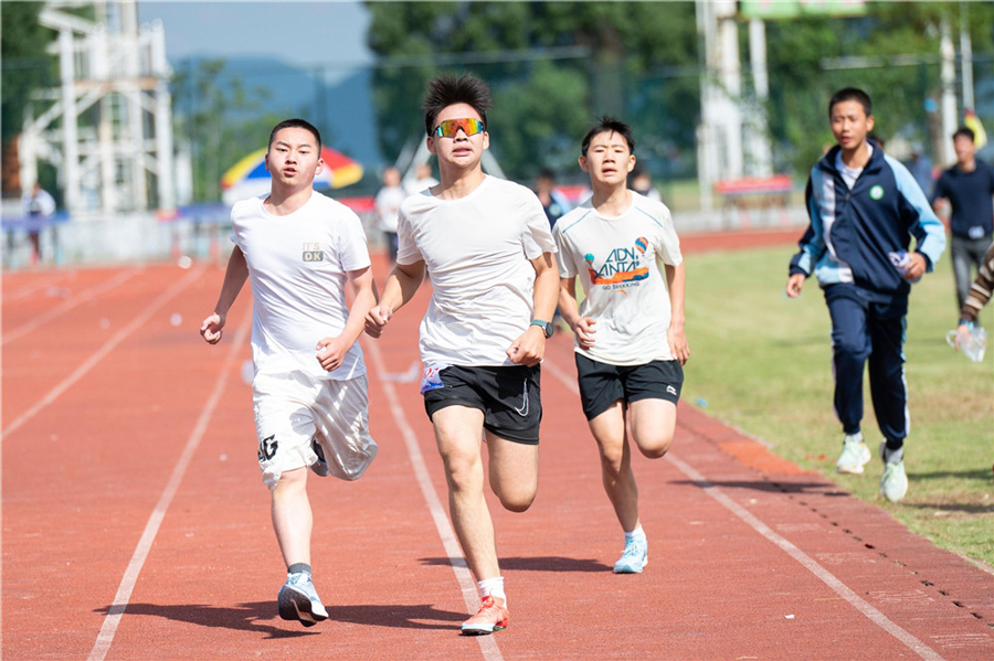 10月23日,池州市九華山風景區中心學校學生在參加跑步比賽。當天,該校舉辦第十五屆中小學生秋季運動會,學生們在賽場上奮勇爭先,盡情享受體育運動帶來的快樂。本報通訊員 儲成勝 攝