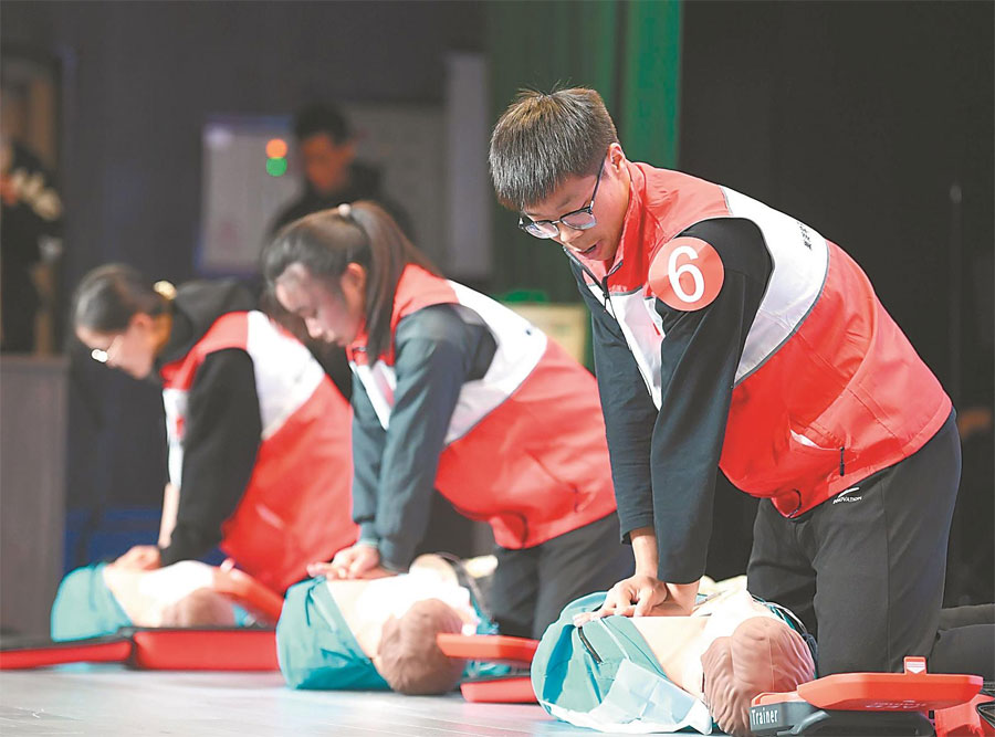 11月19日,巢湖市紅十字會聯合巢湖學院,舉辦心肺復蘇技能大賽。來自巢湖學院的28名學生同臺競技,共同提升校園應急救護能力。通訊員 馬豐成 攝