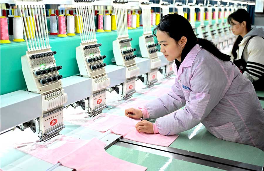 12月16日,在利辛縣舊城鎮一家母嬰用品公司的生產車間,工人在生產訂單。該企業產品銷往北美、歐洲等國家和地區,帶動當地200多人實現家門口就業增收。 本報通訊員 劉勤利 楊晴 攝