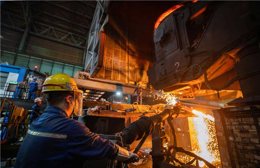 12月12日,馬鋼有限特鋼事業部生產線上,工人在生產風電能源用鋼產品。臨近年末,企業生產線開足馬力,以火熱生產態勢全力沖刺“全年紅”。本報通訊員 羅繼勝 攝
