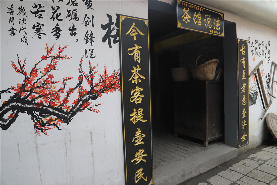 這家茶館內(nèi),有一個特別的去處,上有一副對聯(lián):“古有醫(yī)者懸壺濟(jì)世,今有茶客提壺安民。”臨渙人發(fā)生糾紛后大都到茶館評理,“俗遇不平事,說理到茶肆。”老茶客都是當(dāng)?shù)氐赂咄氐娜耍麄円贿吰凡枰贿厓A聽雙方的訴說,根據(jù)法理、人情和風(fēng)俗習(xí)慣秉公評議,直說得雙方口服心服,拱手言和。舊時的茶館說理是自發(fā)地化解矛盾的一種方式,起到了主持公道、伸張正義的作用,隨著時代的發(fā)展,連心茶室、和諧茶室以及臨渙茶館民間調(diào)解委員會應(yīng)運而生,而今的“茶館說理”,在維護(hù)社會穩(wěn)定中依然發(fā)揮著重要作用。